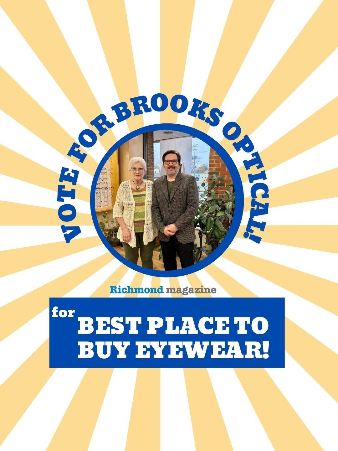 Can Brooks Optical be Richmond's best place to buy eyewear again? If you love our shop and are so inclined, please take a moment to vote for us and for all of your favorite Richmond places!