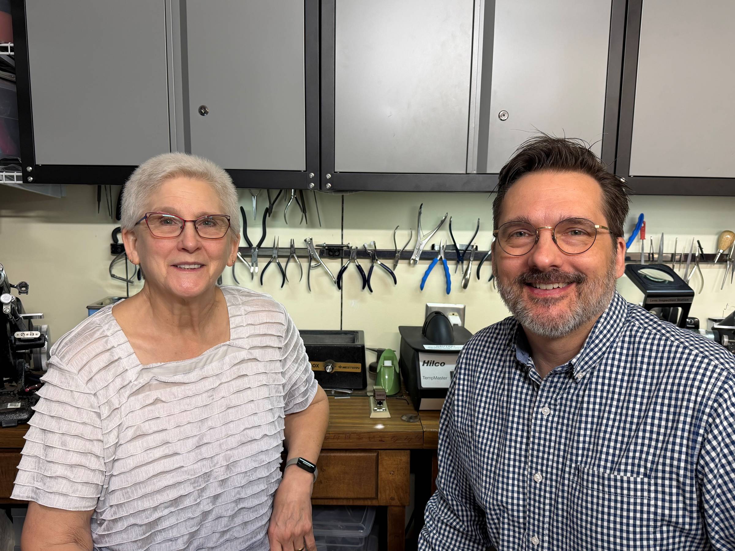 Cliff and Sheila "behind the scenes" in the repair area