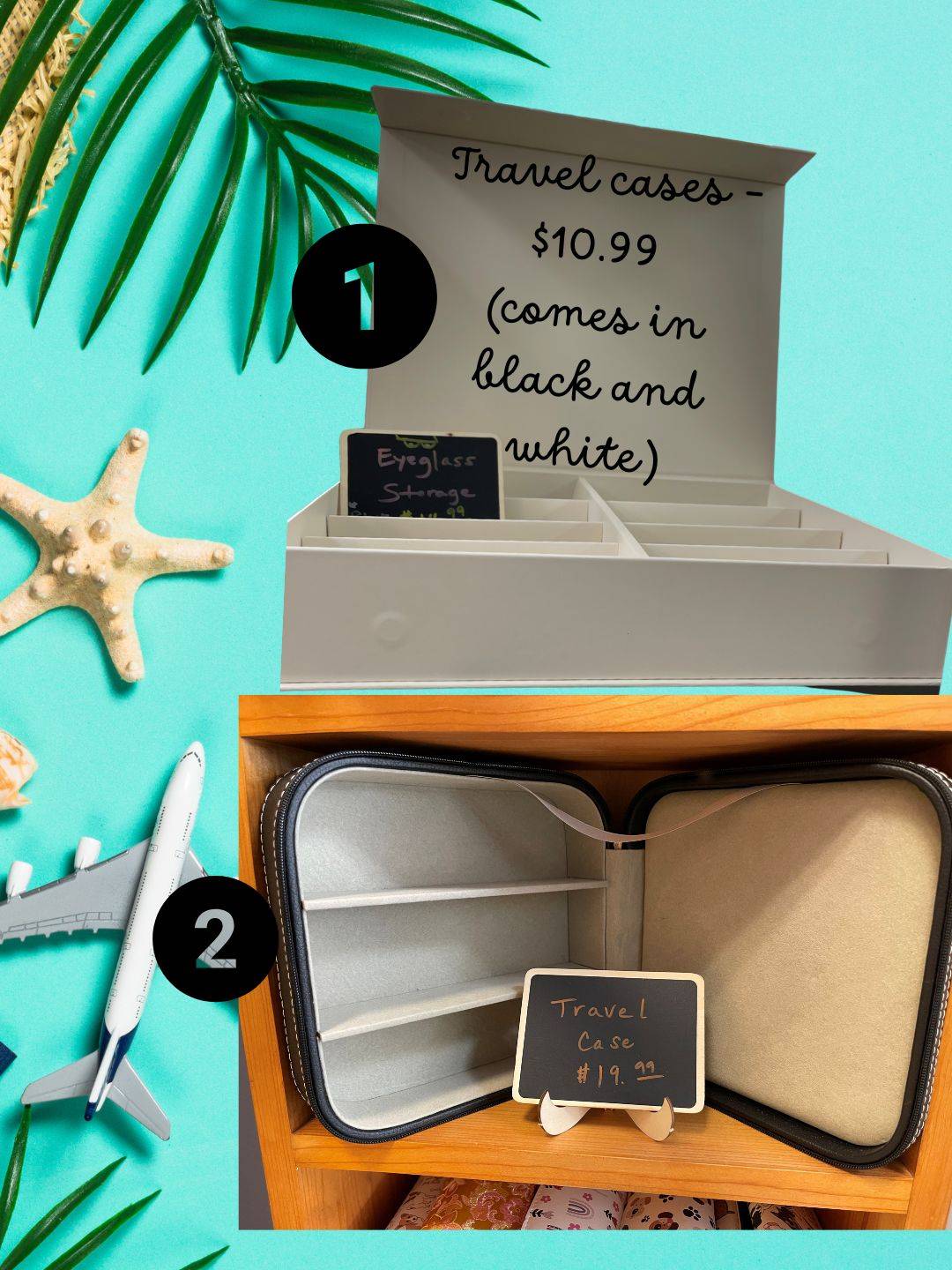 We carry a couple of different options for travel cases to protect your eyewear. Option 2 (bottom) is smaller (great for carry on bags) and more substantial at $19.99. We also carry Option 1 for $10.99 that holds a few more pairs of glasses and is made of a board type of material.